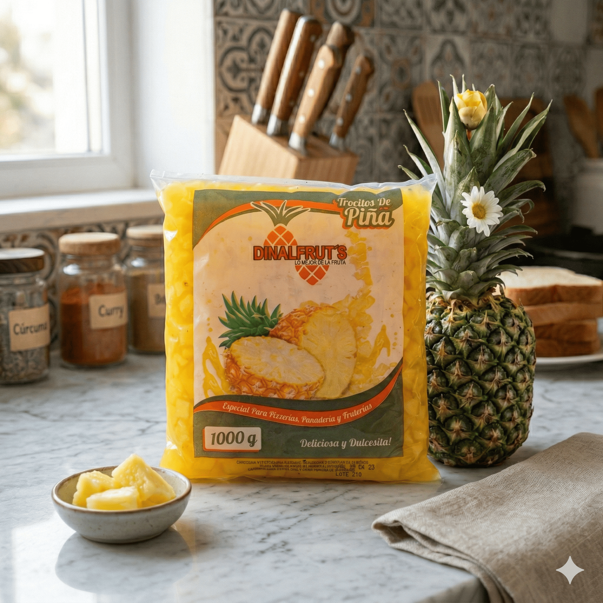Trocitos de piña calada de alta calidad marca Dinalfrut